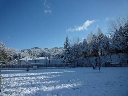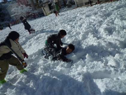 一歩一歩,深い雪に足を沈めながら登校した子どもたち。学校に着くと,グラウンドは一面の銀世界!3年生の総合学習のテーマは「岩倉の自然」…と,いうことで,みんなで外に飛び出して,雪遊びをすることにしました。ふかふかの雪に飛びこんだり,顔を真っ赤にしながら雪合戦をしたりと,今しか味わえない「冬の楽しみ」を体いっぱいで感じました。