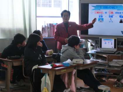 13日(月)の4校時に行政についての学習を行いました。総務省から委嘱された行政相談員の方に来ていただき,行政が担っている役割や生活をよりよくするために市民の声がどのように生かされて行政が行われているかについてお話いただきました。自分たちの生活とは遠いイメージの行政ですが,道の段差をなくしたり,標識を直したりするなど身近なところで取組が行われていることが分かりました。お話の最後には,みんなが身の回りで困っていることをアンケートで聞く時間が設けられ,自分の身の回りの生活がよりよくなるように要望を出すことができていました。