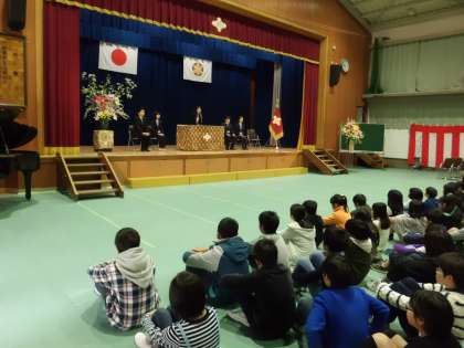 きれいな歌声の校歌と6年生の代表児童の立派なお迎えの言葉で,