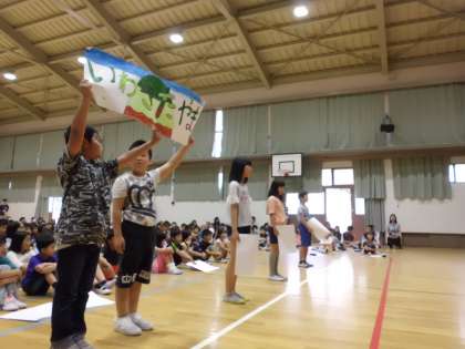1年生を迎える会で,岩倉北小学校の素敵な場所を紹介しました。5分間と言う短い時間でしたが,ボディパーカッションやクイズなどを取り入れ,1年生に喜んでもらえたと思います。とてもいい発表でした。