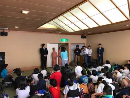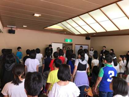 一泊お世話になった竜宮ホテルに感謝の気持ちを伝え、出発式を終えました。