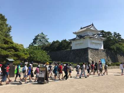 名古屋城に到着しました。天守閣の大きさや石垣の迫力にみんな感心している様子です。