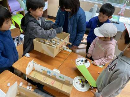 1年生はお兄さんお姉さんらしく、保育園の子どもたちを案内することができました。