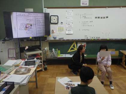 冬休みどのように過ごしたか、またお正月にどんな物を食べたか紹介し合いました。