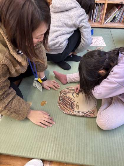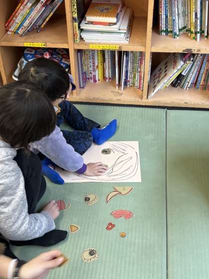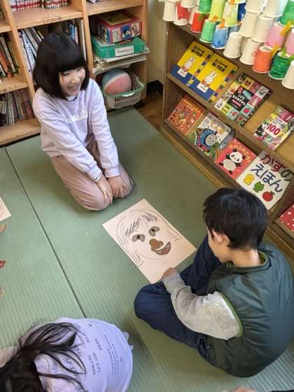 「これは目だよ〜」「もっと右だよ!」と教えてあげる人。