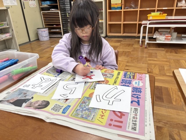 「さ」「か」「ば」「ら」を かきました。これから にじいろになったよ!またしたいよ!ぞうさんのこえ だしたいよ!