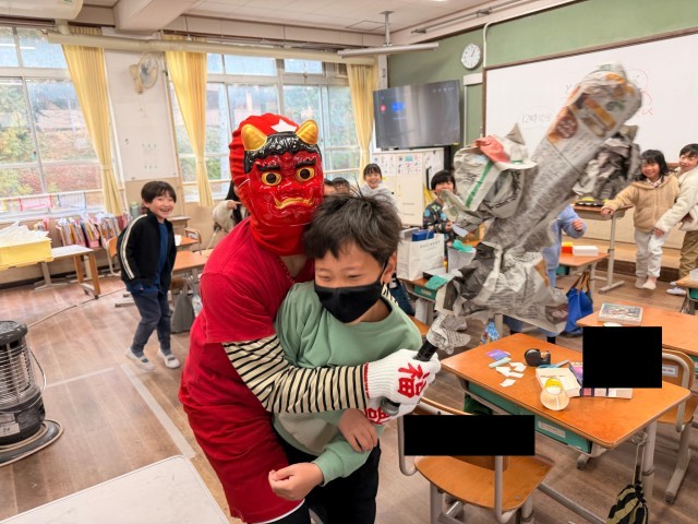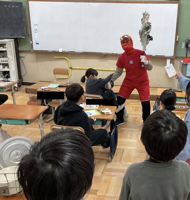 2年生の教室には赤鬼さんと青鬼さんが来ました。