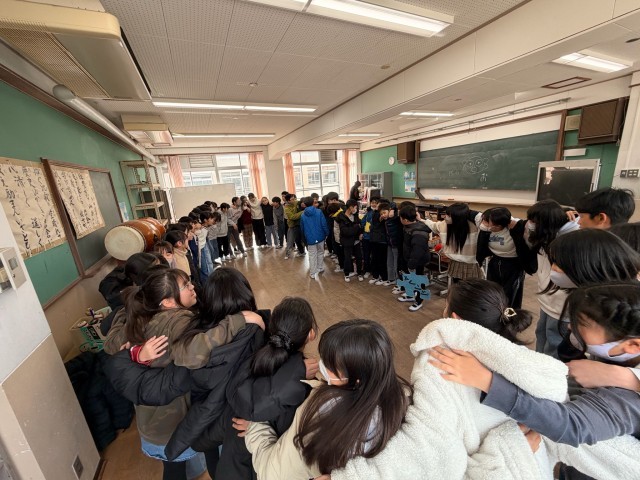 今日はリハーサル前に、学年で円陣を組み、