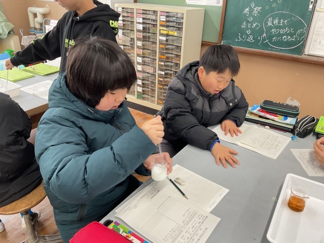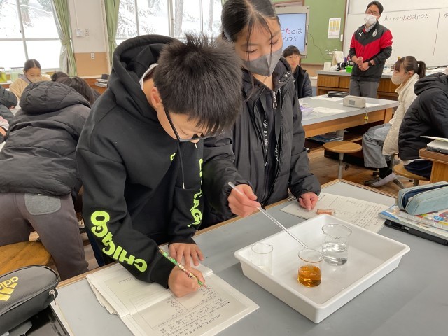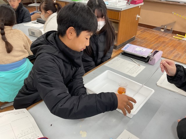 身近な液体物が水溶液なのかどうかを予想し分類しました。