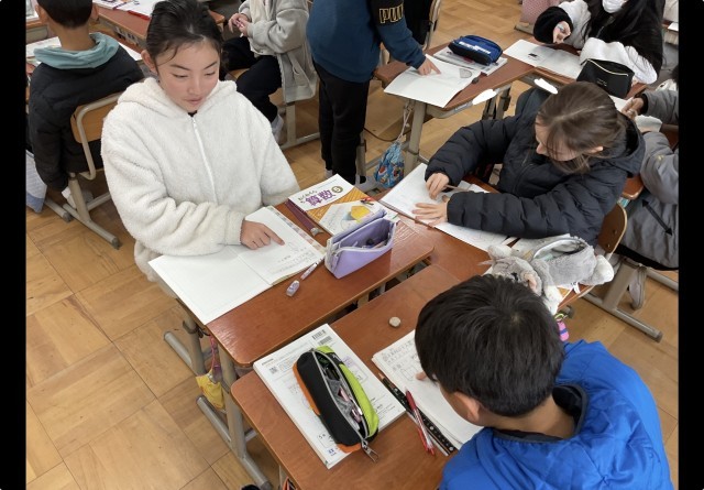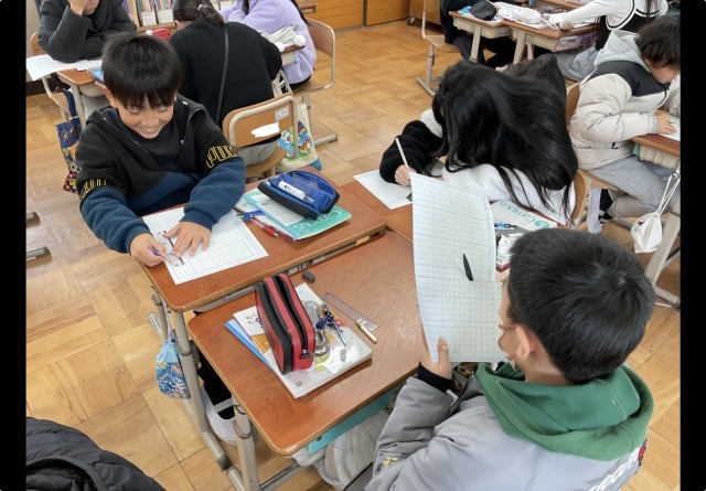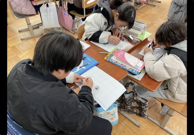 その後、方眼紙を使って色々なサイズの三角柱を作っていました。