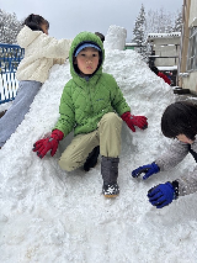 月曜、かまくらをつくりました。2時間続けてやりました。中間休みもやりました。集めて、かまくらをつくりました。1人分の大きさのかまくらをほれました。楽しかったです。