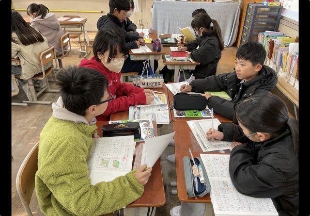 自分で調べた内容を班の友達にしっかりと伝えていました。