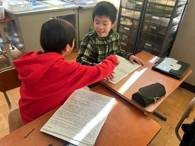 国語「ありの行列」では、今までと少し違いがある説明文にチャレンジしています。みんなで意見を出し合っての学び合いがとっても活発です!