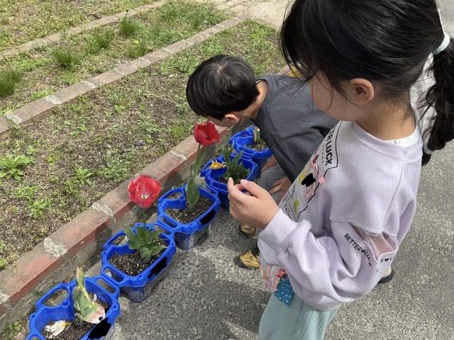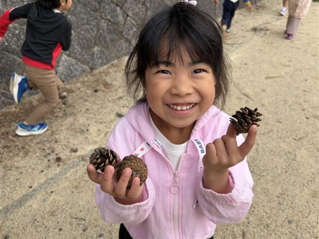 今日は、築山、中庭、校庭を探検し、たくさんものを見つけました。