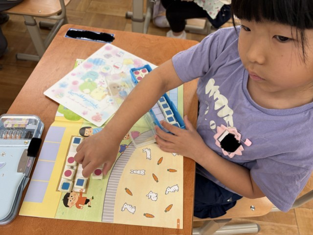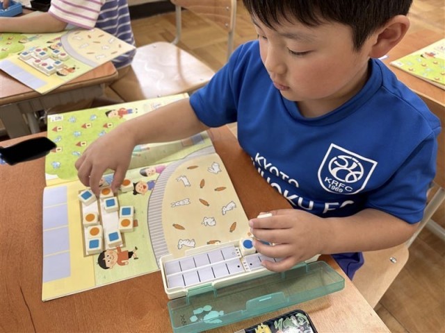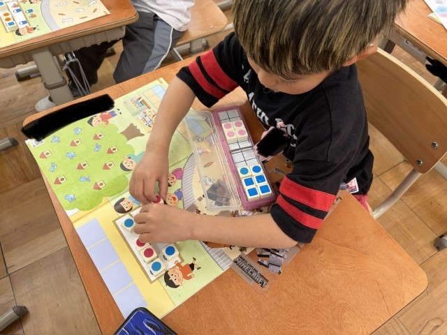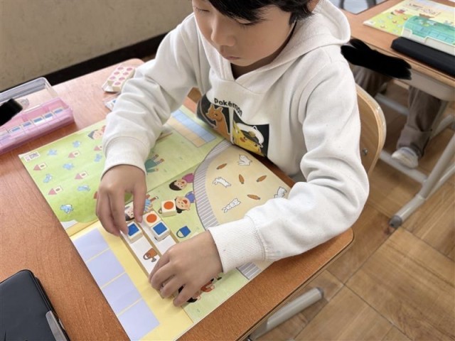 今日は算数の学習で、初めて、数図ブロックを使いました。