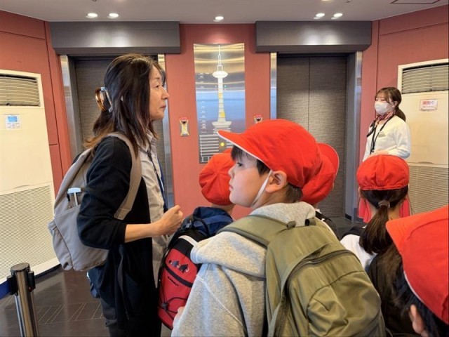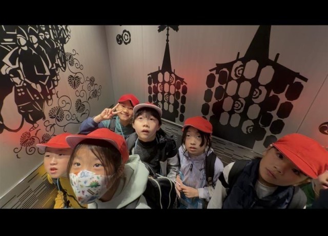 京都タワーのてっぺんまで、エレベーターでいきます。いまどの位置にいるのか興味津々でした。