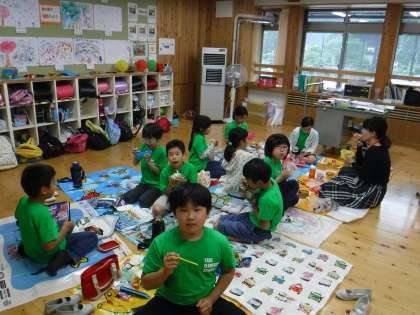お家の方が心をこめて作ってくださったお弁当,みんなで楽しみながらいただきました。