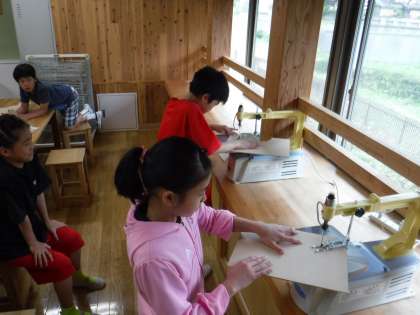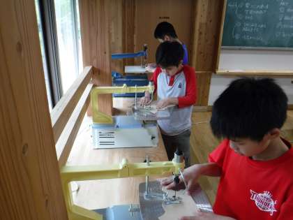 思ったより簡単に板を切ることができて,満足そうな5年生でした。