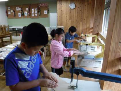 図工の学習で,糸のこぎりを使っていろいろな形に板を切ります。