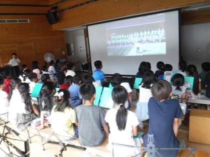 今日は3〜6年生で,夕焼けコンサートの振り返りを行いました。