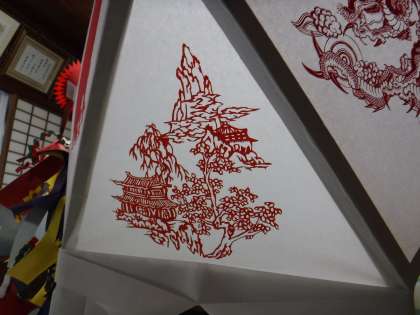燈籠に貼られた繊細な切り絵には、