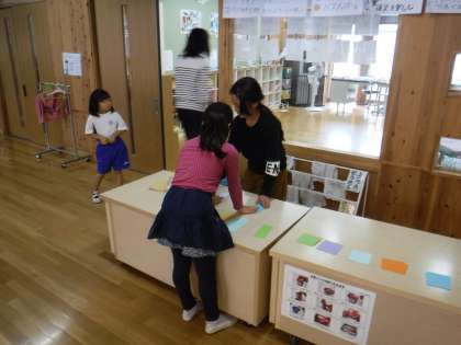 お気に入りの本を探して参考にしたり,好きな絵をどんどん描いたりと,