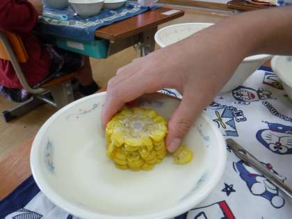 カットコーンは,スチコンでふっくらと蒸し上がっていました。