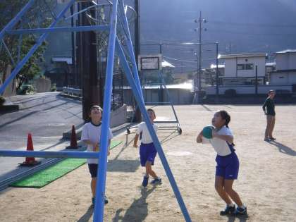 ドリブルやシュートをして楽しむ3年生を見かけました。