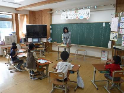 1年生は,国語 こえにだしてよもう「くじらぐも」の音読の様子を