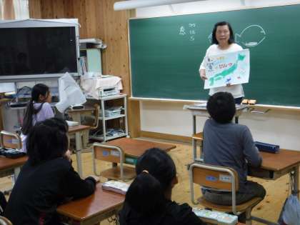 栄養教諭が,チャレンジタイムに各クラスを順番にまわって,食育学習を行います。