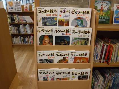 1階の読書コーナーでは,現在アートに関する絵本を展示中です。