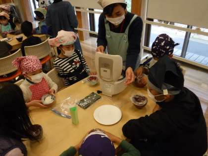 おにぎりは,ビニル袋で握るなど衛生面にも気をつけています。