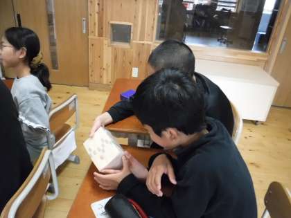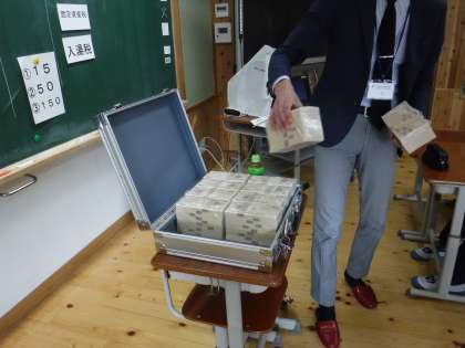 学習の終わりには,模造品の紙幣を触らせていただきました。