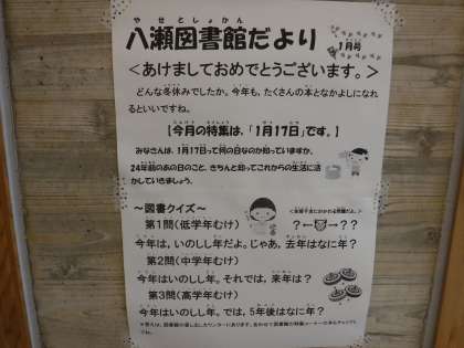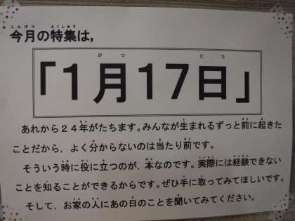 今月の図書館の特集は,「1月17日}