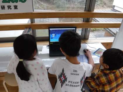 放課後に八瀬ラボで,コンピュータに向かっている子どもたちを見かけました。