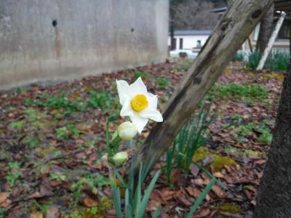 玄関前のスイセンが,一輪咲きました。