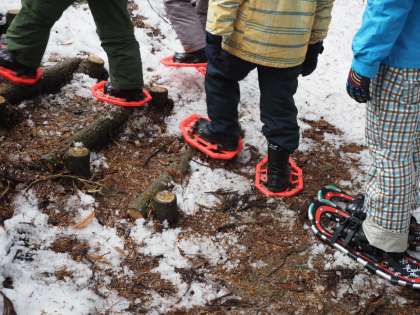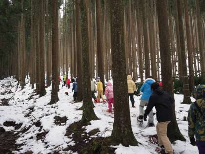 かんじき を靴につけて、雪の山の中を歩きました。
