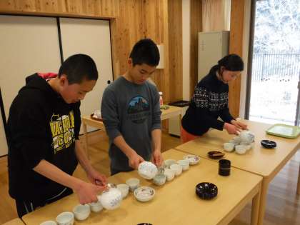 家庭科で学習した日本茶で,ティータイムを楽しみました。