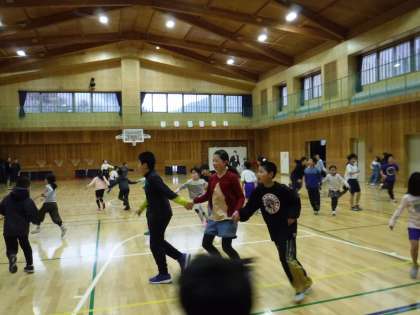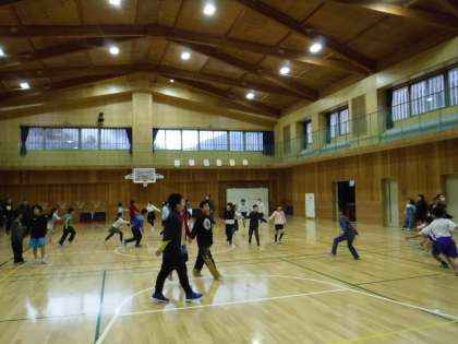 体が温まってくると,一枚ずつシャツを脱ぎ始める子どもたち。