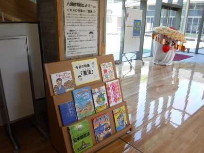 八瀬図書館では,憲法に関連した図書を早速玄関に展示しています。
