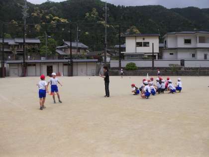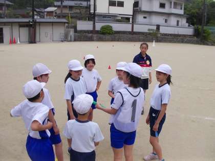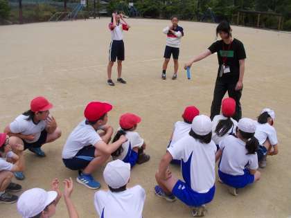 運動会に向け,リレーの練習をはじめました。バトンパスの練習や,走順をチームで決めたりと工夫しながら活動をしています。早速チャレンジ生にもバトンパスのコツを教わりました。