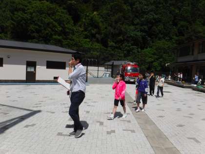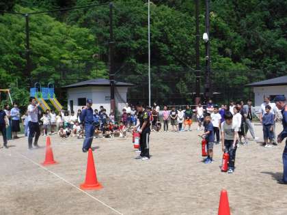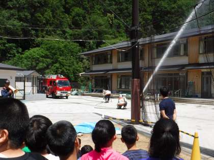 訓練の後は,消火器訓練や放水の見学なども行いました。
