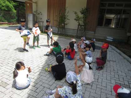 最後に,2年生が1年生にあさがおの種と風船かずらの種をプレゼントしました。