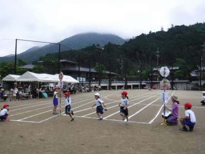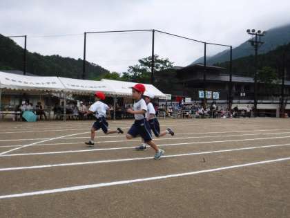 1,2年生は,走る前に,マイクを使って自分のめあてを発表します。