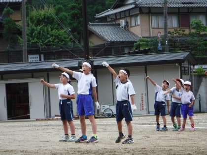応援係の子どもたちのアイデアで,観客の皆さんが楽しんで下さいました。