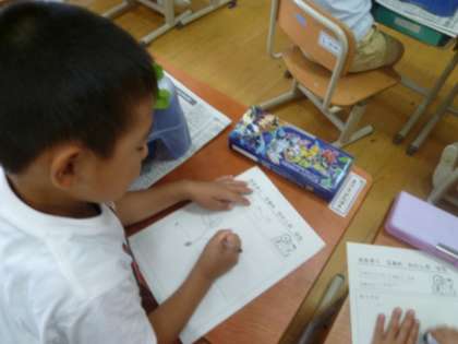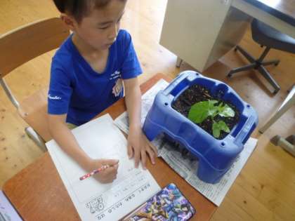 今日は,アサガオの観察をしました。「葉の大きさ」や「葉の色」「葉の数」など,前回観察した時との違いを,細かくスケッチしていました。