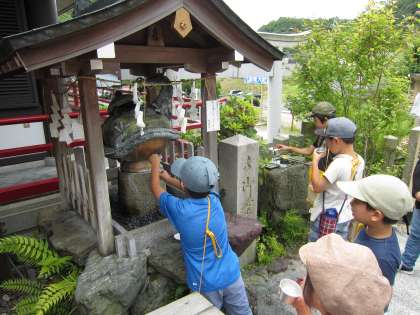今日はアーバン方面まで町探検に行ってきました。アーバンでは,アーバンに住んでいる子達が用水路や鯉のいる池やベンチなどお気に入りの場所を案内してくれました。その次に九頭竜弁天に行きました。手を清めて,お参りをして,御霊水を飲んで,展望台?に上って,九頭竜さんを満喫してきました。