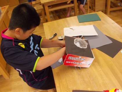クランクを作る際にペンチで針金を曲げていきます。これがなかなか難しく苦労しています。しかし出来上がりのイメージははっきりとあり,熱心に取り組んでいます。