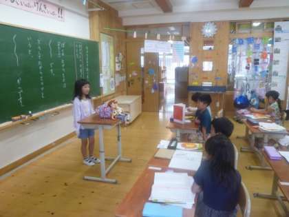 自分の宝物を,思い出とともに,みんなに紹介しました。友だちが,どんな宝物を紹介するのか,みんな興味津々でした。最後には,みんなの宝物を見て回りました。