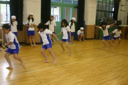 1年から6年までの全員が,ソフトボール投げ,立ち幅跳び
